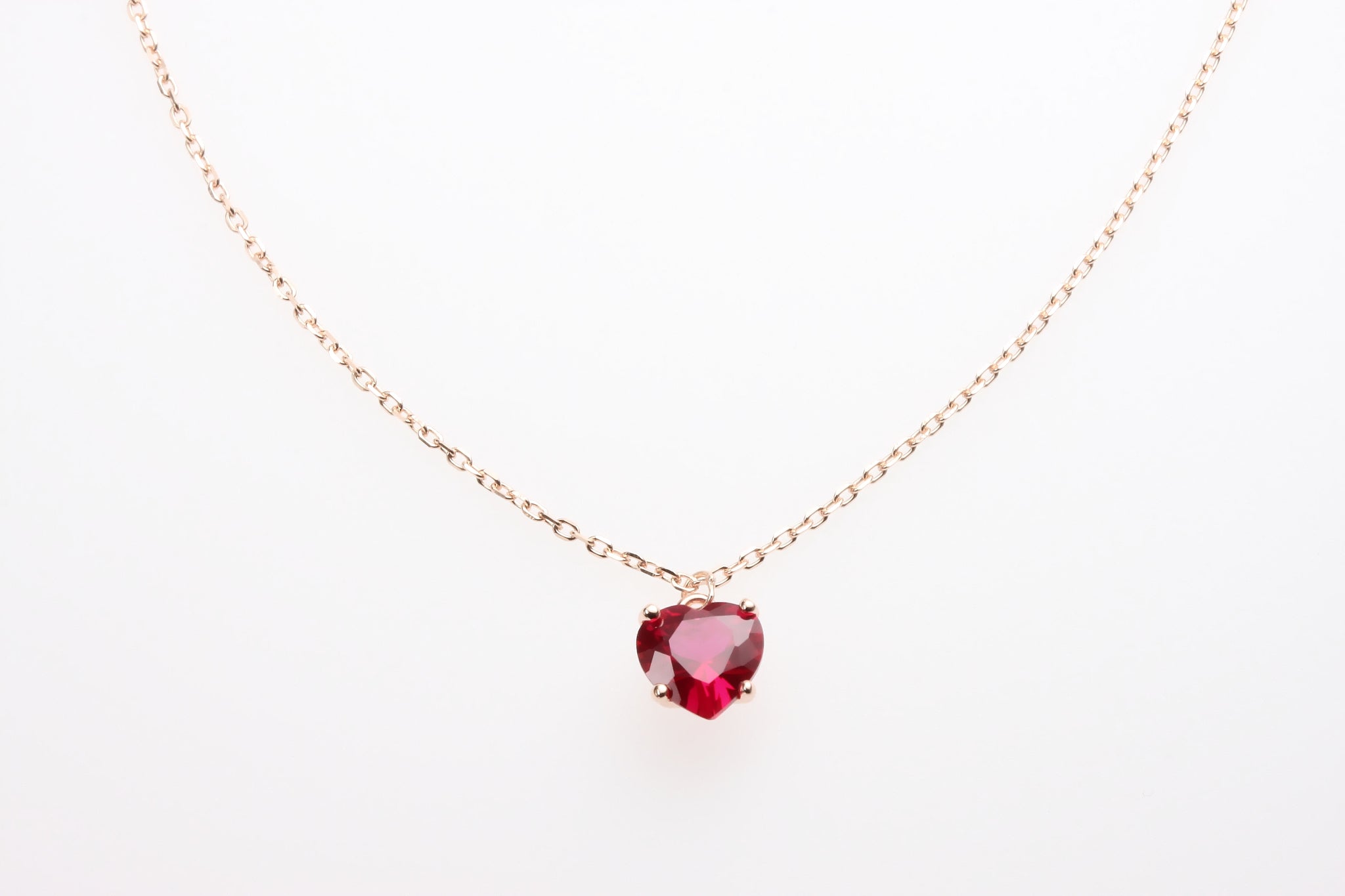 Necklace with Ruby Heart in Pure Cubic Zirconia Crystal that gives the necklace a great light and to the wearer the warmth of feelings and love,